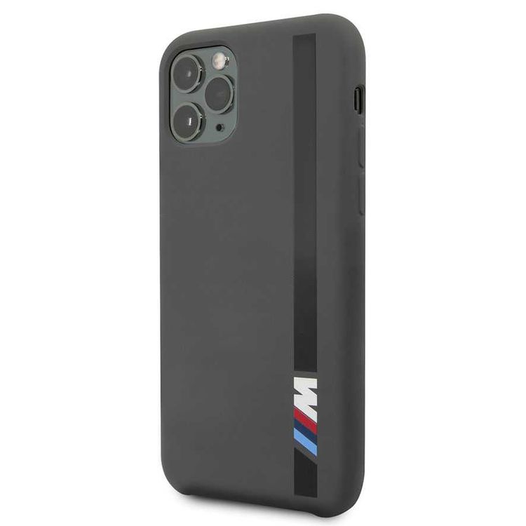 CG Mobile BMW Tone-on-Tone Stripe Silicone Hard Case for iPhone 11 Pro (5.8) Officially Licensed, Shock & Scratch Resistant, Compatible with Wireless Chargers - Dark Gray
