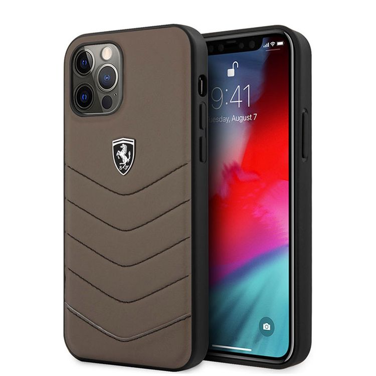 CG MOBILE Ferrari Heritage Quilted Leather Hard Case, Shock-Absorption & Drop Protection Back Cover Compatible For iPhone 12 Pro Max (6.7") Officially Licensed