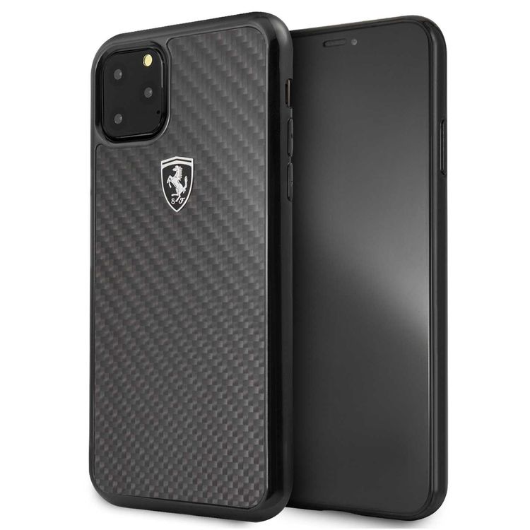 CG MOBILE Ferrari Heritage Real Carbon Hard Phone Case Compatible for Apple iPhone 11 Pro Max (6.5") Anti-Scratch Mobile Case Officially Licensed - Black