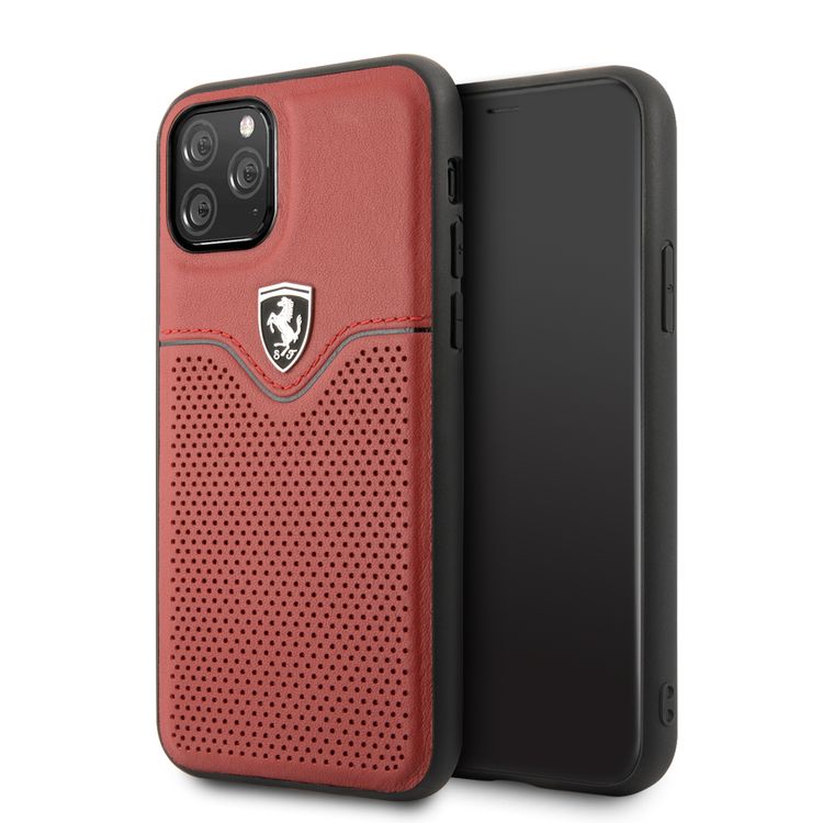 CG MOBILE Ferrari Leather Hard Phone Case Victory Compatible for iPhone 11 Pro (5.8") Shock Resistant Mobile Cover Officially Licensed - Red