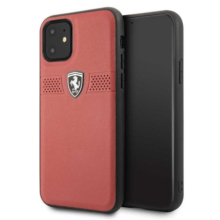 CG MOBILE Ferrari Off Track Grained Leather Phone Case for iPhone 11 (6.1") Mobile Case Suitable with Wireless Chargers Officially Licensed - Red
