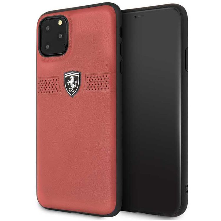 CG MOBILE Ferrari Off Track Grained Leather Phone Case for iPhone 11 Pro Max (6.5") Mobile Case Suitable with Wireless Chargers Officially Licensed - Red