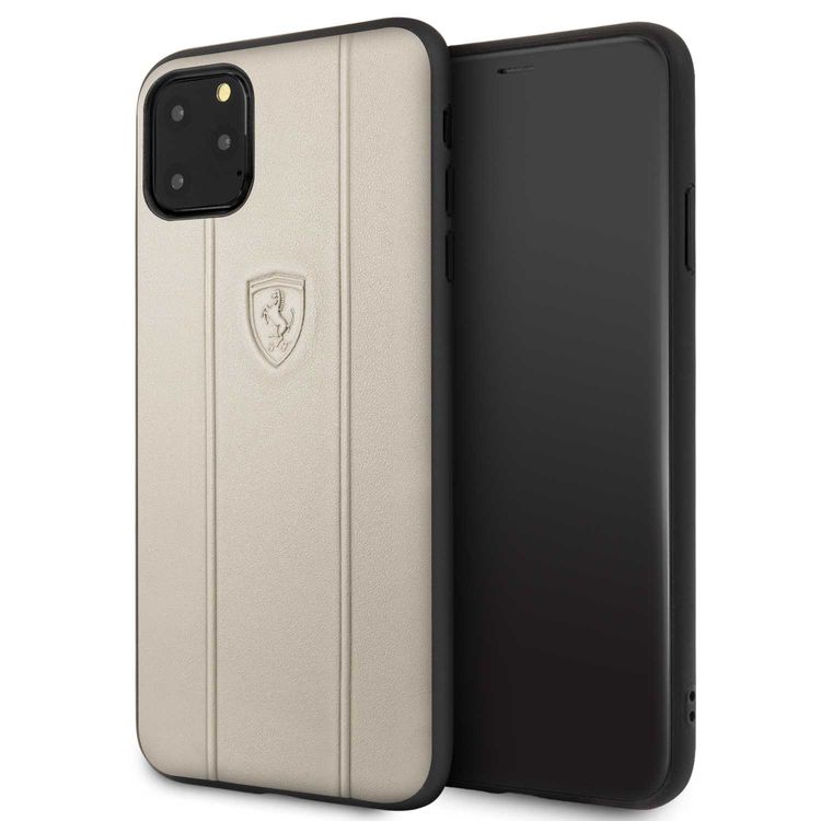 CG MOBILE Ferrari Off Track Leather Embossed Line Phone Case Compatible for iPhone 11 Pro Max (6.5") Mobile Case Suitable with Wireless Charging Officially Licensed - Beige