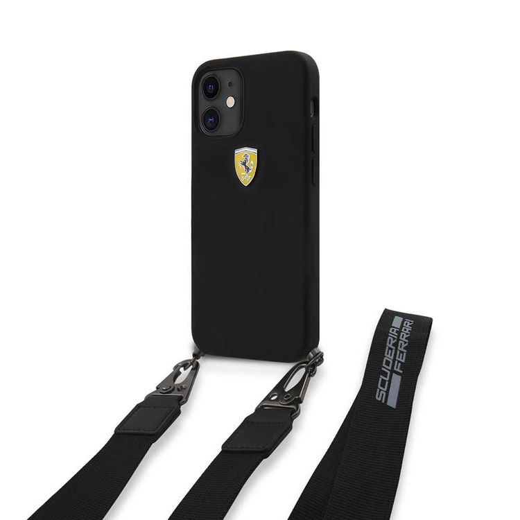 CG Mobile Ferrari On Track Liquid Silicone Hard Case with Removable Strap and Metal Logo for iPhone 12 Mini (5.4") Officially Licensed, Premium Silicone Case, Shock Resistant