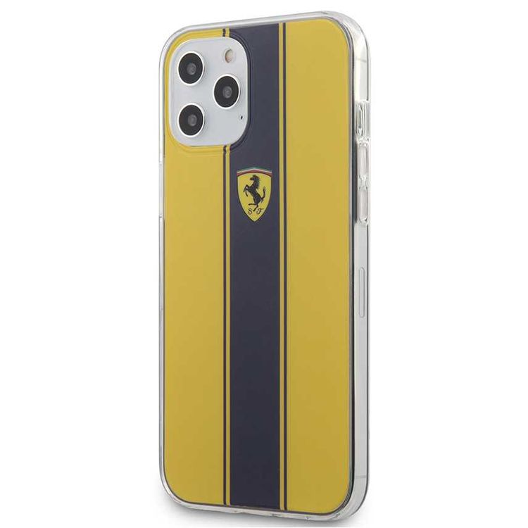 CG Mobile Ferrari On Track PC/TPU Hard Case with Navy Stripes Compatible for iPhone 12 Pro Max (6.7") - Yellow