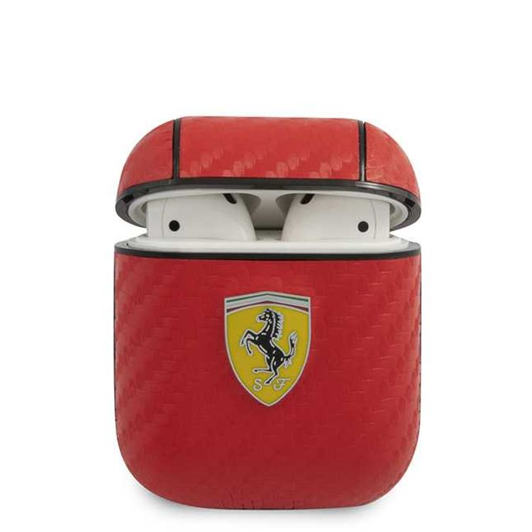 CG Mobile Ferrari PC PU Carbon Yellow Shield Metal Logo Case Compatible for Airpods 1/2 - Red