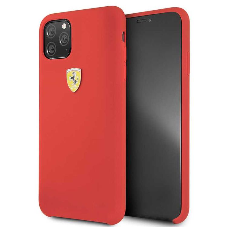 CG MOBILE Ferrari SF Silicone Hard Phone Case Logo Shield Compatible for iPhone 11 Pro Max (6.5") Drop Protection Mobile Case Officially Licensed - Red