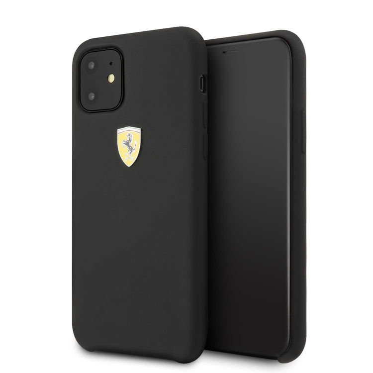 CG MOBILE Ferrari SF Silicone Hard Phone Case Logo Shield Compatible for iPhone 11 (6.1") Drop Protection Mobile Case Officially Licensed - Black