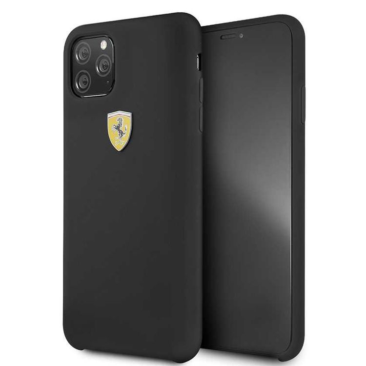 CG MOBILE Ferrari SF Silicone Hard Phone Case Logo Shield Compatible for iPhone 11 Pro Max (6.5") Drop Protection Mobile Case Officially Licensed - Black
