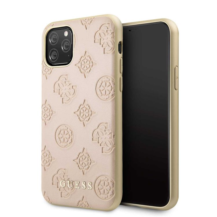 CG MOBILE Guess 4G Peony PC/TPU Leather Hard Phone Case Compatible for iPhone 11 Pro (5.8") Classy Design Shockproof Mobile Case Officially Licensed - Light Pink