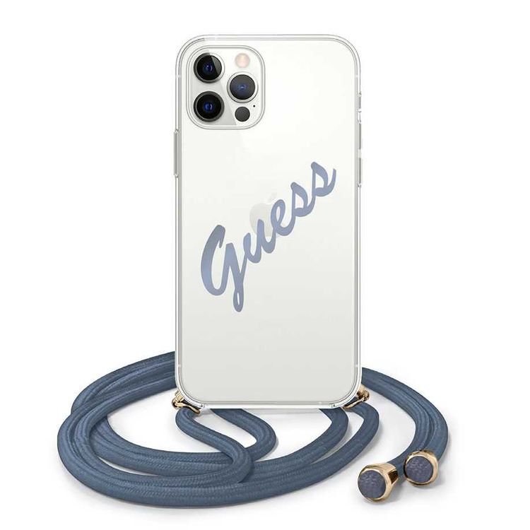 CG MOBILE Guess Crossbody Script Hard Phone Case Compatible for iPhone 12 / 12 Pro (6.1) Mobile Case Officially Licensed. Guess Script Vintage, the new collection sets the standard for unique taste. It is characterized by uncompromising quality and integrity with its own image. The case has built-in gold handles to which a handy cord is attached.