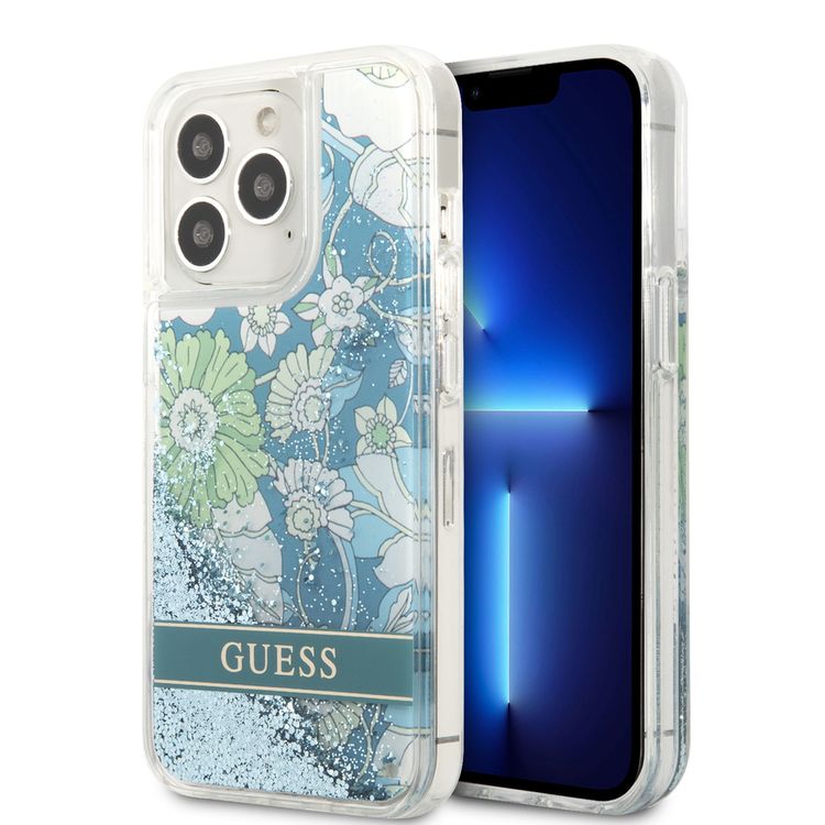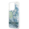 CG MOBILE Guess GUHCP13XLFLSN Liquid Glitter Hard Case, Charms Hard Phone Case, Compatible for iPhone 13 Pro Max, Shock-Absorption Mobile Case Officially Licensed - Flower Green