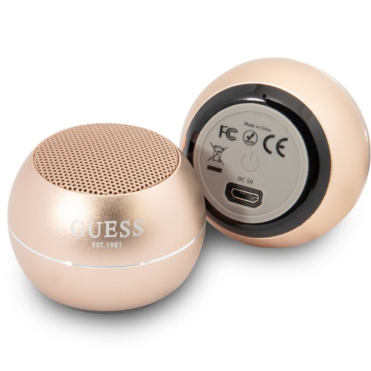 Guess Mini Bluetooth Speaker with 300mAh Battery Capacity, Music & Phone Call Function, Durable Aluminum Material, Bluetooth Version 5.0, Up to 4 Hours Working Time, 10m Transmission Range - Gold