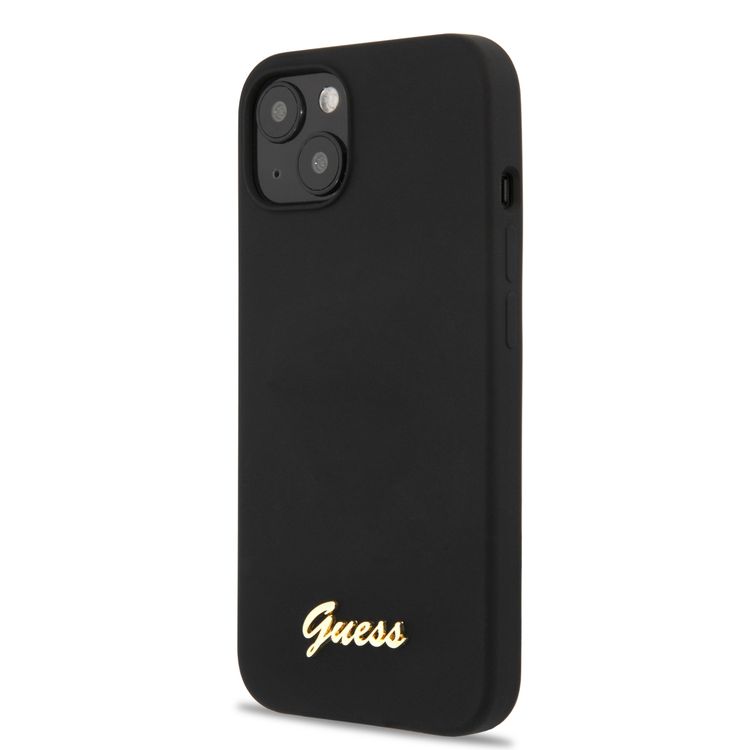 CG MOBILE Guess Liquid Silicone Case with Gold Metal Logo Script Compatible for iPhone 13 (6.1") Anti-Scratch, Easy Access to All Ports, Shock Absorption