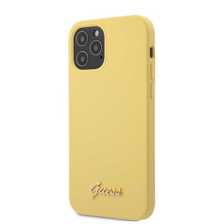 CG Mobile Guess Liquid Silicone Case with Metal Logo Compatible for iPhone 12 / 12 Pro (6.1") Premium Silicone Case, Shock & Scratch Resistant, Easy Access to All Ports - Yellow
