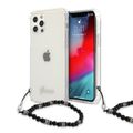 CG MOBILE Guess PC Transparent Hard Case with Pearl's Handle and Script Logo, Drop Protection Back Cover Compatible for iPhone 12 / 12 Pro ( 6.1" ) - Black