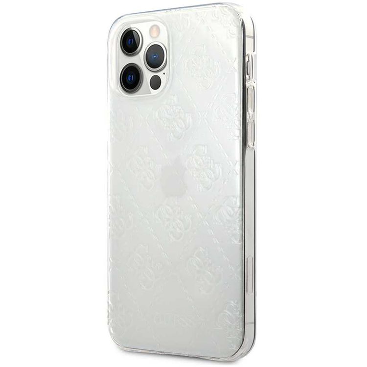 CG Mobile Guess PC/TPU 4G Pattern Hard Case Compatible for iPhone 12 / 12 Pro (6.1") Shock & Scratch Resistant, Easy Access to All Ports, Drop Protection Back Cover - Transparent