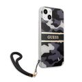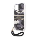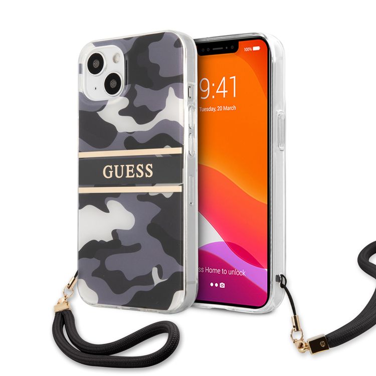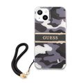 CG MOBILE Guess PC/TPU Case Camo Design & Stripe with Anti-Lost Nylon Strap for iPhone 13 (6.1") Back Cover Suitable with Wireless Chargers Officially Licensed Black