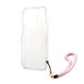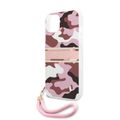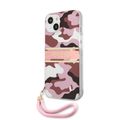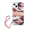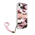 CG MOBILE Guess PC/TPU Case Camo Design & Stripe with Anti-Lost Nylon Strap for iPhone 13 (6.1") Shock Absorption & Drop Protection Suitable with Wireless Chargers Officially Licensed Pink