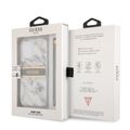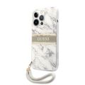 CG MOBILE Guess PC/TPU Case Marble Design & Stripe with Anti-Lost Nylon Strap for iPhone 13 Pro (6.1") Back Cover Suitable with Wireless Chargers Officially Licensed Gray