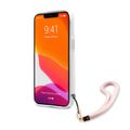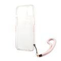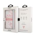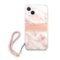 CG MOBILE Guess PC/TPU Case Marble Design & Stripe with Anti-Lost Nylon Strap for iPhone 13 (6.1") Shock Absorption & Drop Protection Suitable with Wireless Chargers Officially Licensed Pink