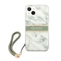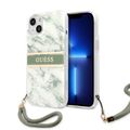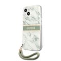 CG MOBILE Guess PC/TPU Case Marble Design & Stripe with Anti-Lost Nylon Strap for iPhone 13 (6.1") Shock Absorption & Drop Protection Suitable with Wireless Chargers Officially Licensed Green