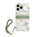 CG MOBILE Guess PC/TPU Case Marble Design & Stripe with Anti-Lost Nylon Strap for iPhone 13 Pro Max (6.7") Suitable with Wireless Charging Officially Licensed - Green