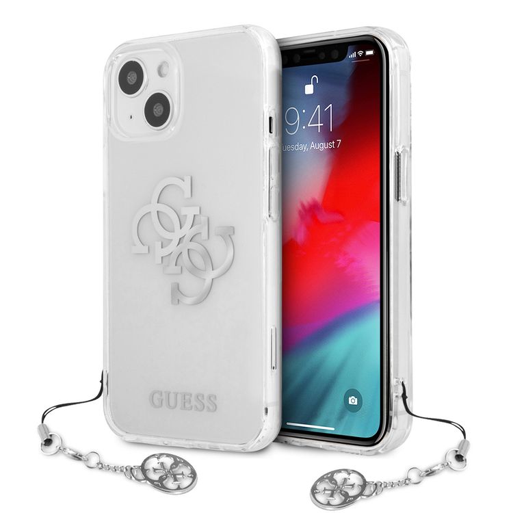 CG MOBILE Guess PC/TPU Case Transparent 4G Electroplated Logo with Elegant Charm Compatible for iPhone 13 (6.1") Anti-Scratch, Easy Access to All Ports
