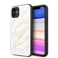 CG MOBILE Guess PC/TPU Layer Gold Glitter Marble Case Compatible with iPhone 11, Minimalist Design, Supports Wireless Charging, Scratch Resistant, Officially Licensed - White