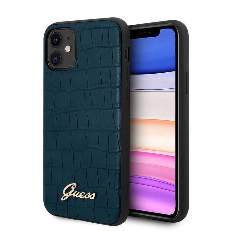 CG Mobile Guess PU Croco Print Phone Case with Metal Logo Compatible for iPhone 11 (6.1") Shock & Scratch Resistant Officially Licensed - Blue