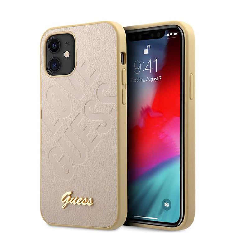 CG MOBILE Guess PU Iridescent "LOVE" Debossed Phone Case with Metal Logo Compatible for iPhone 12 Mini (5.4") Drop Protection Mobile Case Officially Licensed - Light Gold