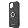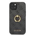 CG MOBILE Guess PU Leather 4G Case with 360° Rotating Ring Grip Holder Stand Compatible for iPhone 13 Mini (5.4") Suitable with Wireless Charging Officially Licensed - Black
