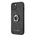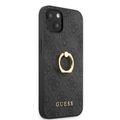 CG MOBILE Guess PU Leather 4G Case with 360° Rotating Ring Grip Holder Stand Compatible for iPhone 13 (6.1") Suitable with Wireless Charging Officially Licensed - Black