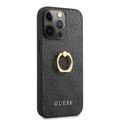 CG MOBILE Guess PU Leather 4G Case with 360° Rotating Ring Grip Holder Stand Compatible for iPhone 13 Pro Max (6.7") Drop Protective Back Cover Officially Licensed - Black