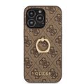 CG MOBILE Guess PU Leather 4G Case with 360° Rotating Ring Grip Holder Stand Compatible for iPhone 13 Pro (6.1") Suitable with Wireless Charging Officially Licensed - Brown