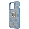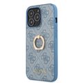 CG MOBILE Guess PU Leather 4G Case with 360° Rotating Ring Grip Holder Stand Compatible for iPhone 13 Pro Max (6.7") Suitable with Wireless Charging Officially Licensed - Blue