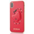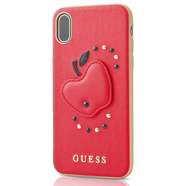 CG MOBILE Guess PU Leather Hard Phone Case with Red Apple Compatible for iPhone X (5.8") Anti-Scratch Mobile Case Officially Licensed - Red