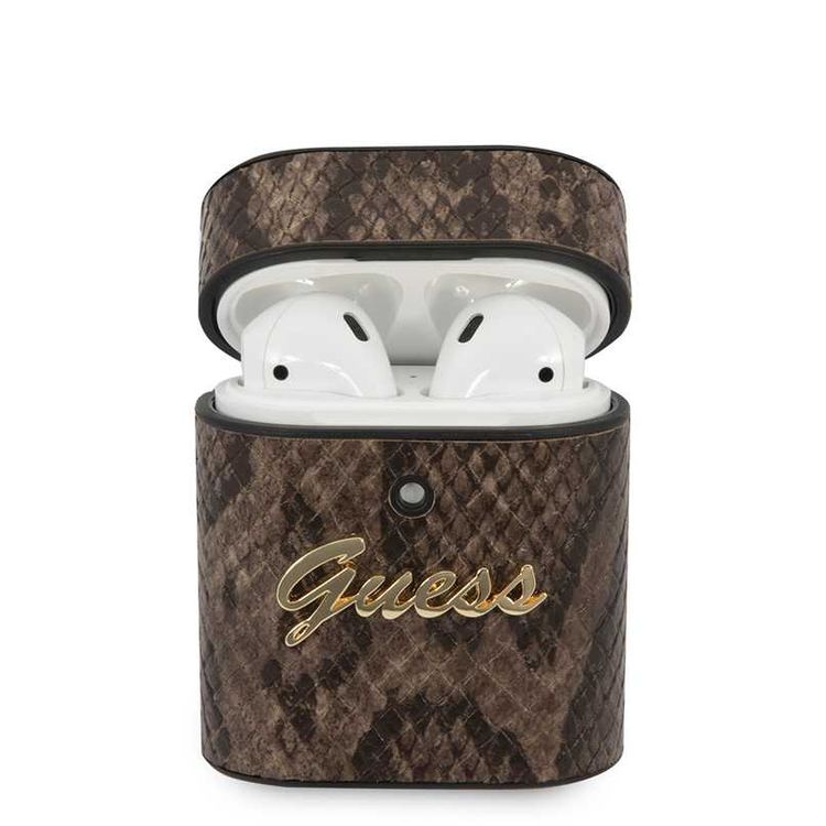 CG Mobile Guess PU Python Round Shape Case with Metal Logo & Anti-Lost Ring Compatible for AirPods 1/2, Scratch Resistant, Shock Absorption, Drop Protection, & Dustproof