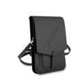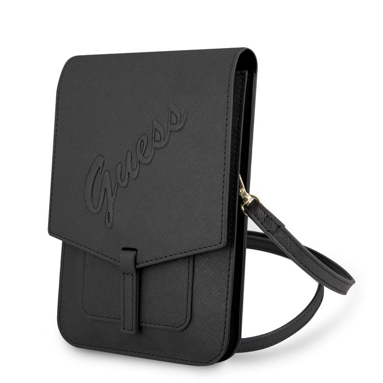 CG MOBILE Guess PU Saffiano Script Crossbody Wallet Bag with Adjustable Strap, Slim Portable Phone Bag Suitable for Outdoor, Business, Office, School Officially Licensed - Black