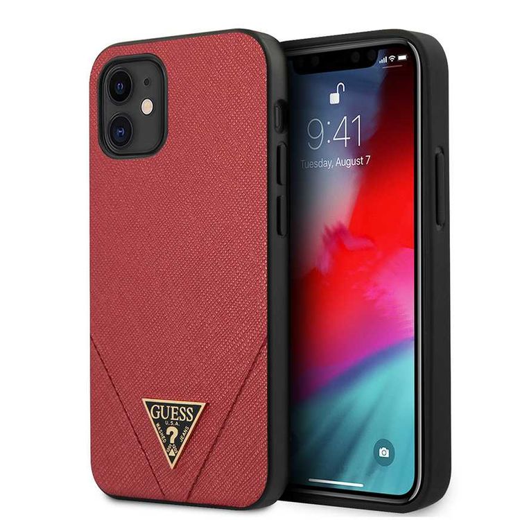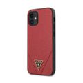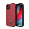 CG Mobile Guess PU Saffiano V Stitched w/ Metal Logo Case for iPhone 12 Mini (5.4") Officially Licensed, Shock Resistant, Scratches Resistant, Easy Access to All Ports, Cameras - Red