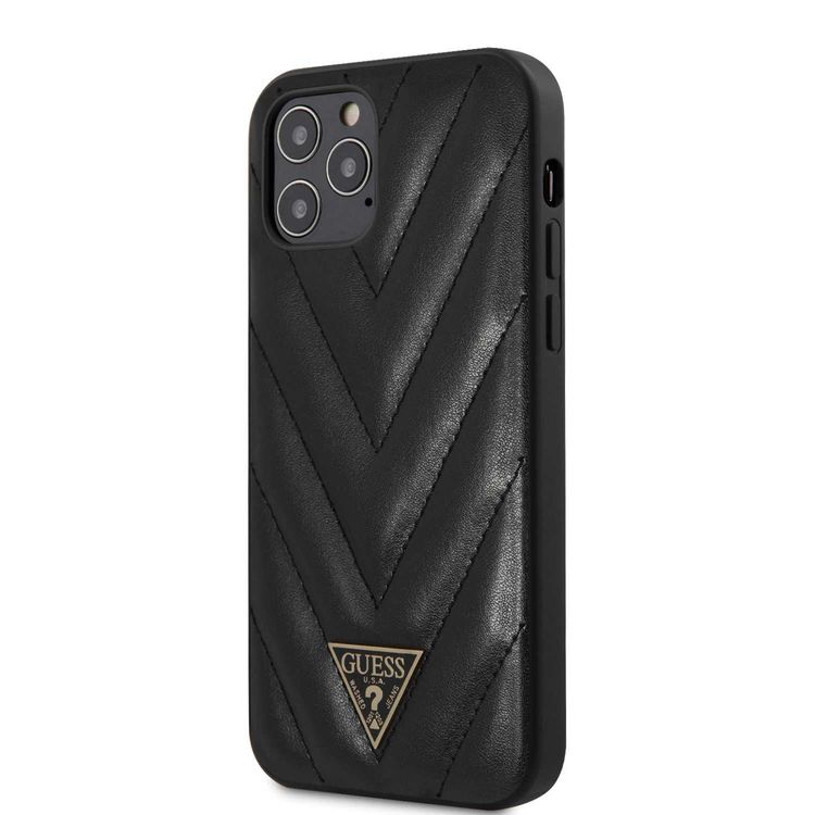 CG Mobile Guess PU V Quilted Hard Case Compatible for iPhone 12 Pro Max (6.7") Shock & Scratch Resistant, Easy Access to All Ports, Drop Protection Back Cover Suitable with Wireless Chargers Officially Licensed - Black