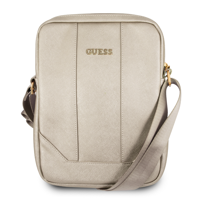 CG MOBILE Guess Saffiano-Look PU Tablet Bag 10" with Adjustable Shoulder Strap Slim Portable Storage Bag Suitable for Outdoor, Business, Office, School Officially Licensed - Beige