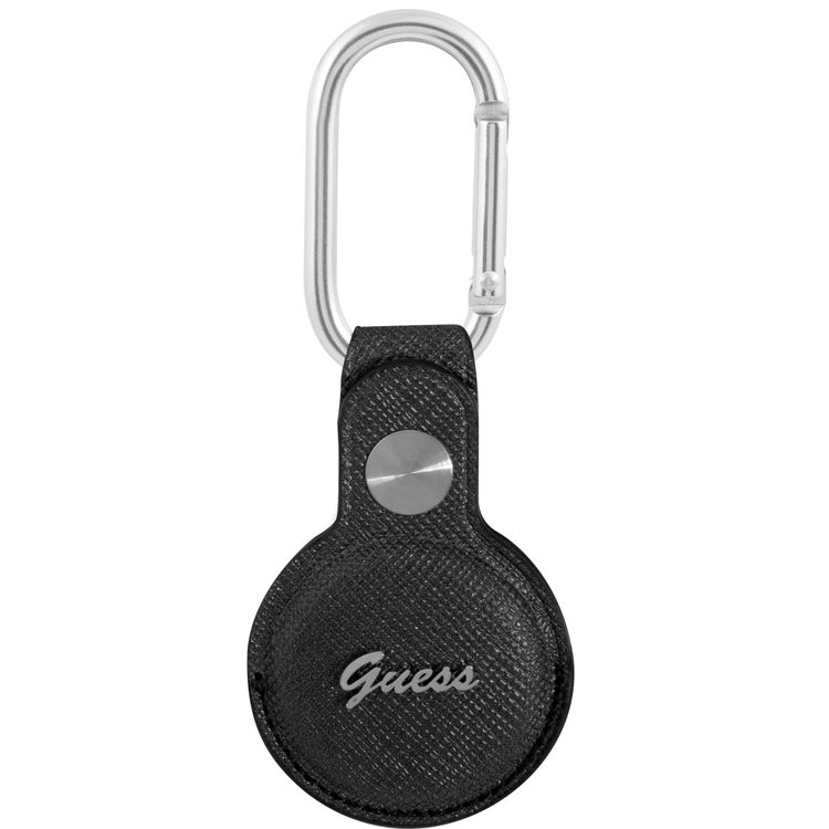 CG MOBILE Guess Saffiano PU Script Logo Case with Dog Clip for Airtag, Portable Protective Skin Cover, Anti-Lost Holder with Keychain Officially Licensed Black