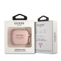CG MOBILE Guess Silicone Glitter Case with Ring Compatible for AirPods 3, Scratch & Drop Resistant, Dustproof & Absorbing Protective Silicone Cover