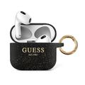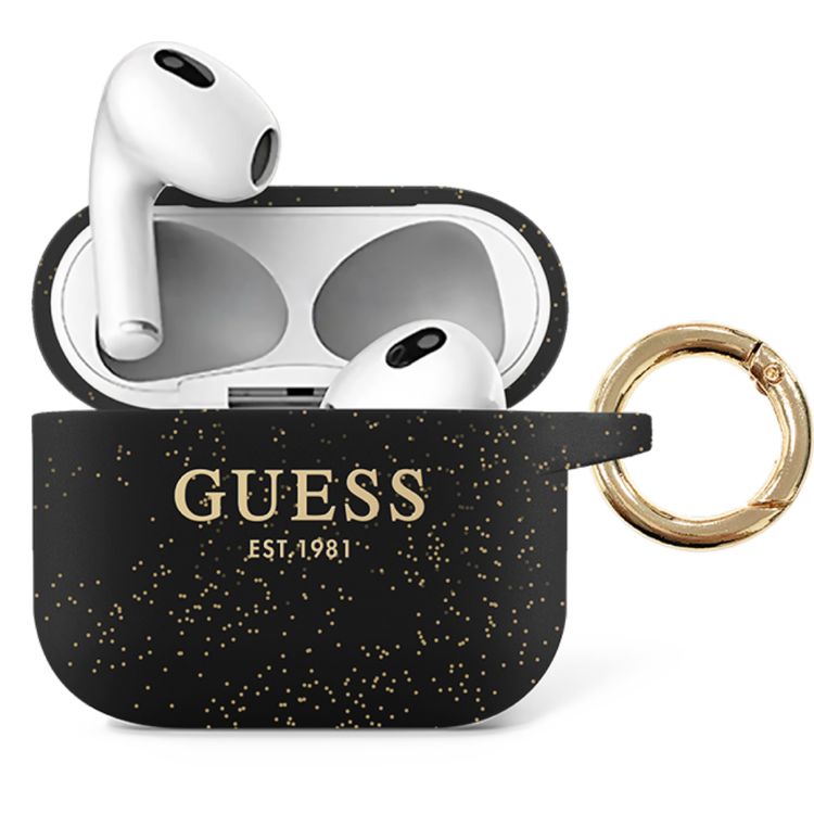 CG MOBILE Guess Silicone Glitter Case with Ring Compatible for AirPods 3, Scratch & Drop Resistant, Dustproof & Absorbing Protective Silicone Cover