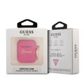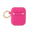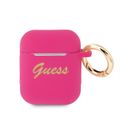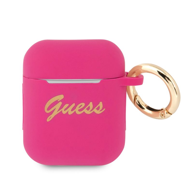 CG MOBILE Guess Silicone Printed Script Case with Anti-Lost Ring Compatible for AirPods 1/2, Scratch Resistant, Shock Absorption & Drop Protection Cover Officially Licensed - Fuchsia