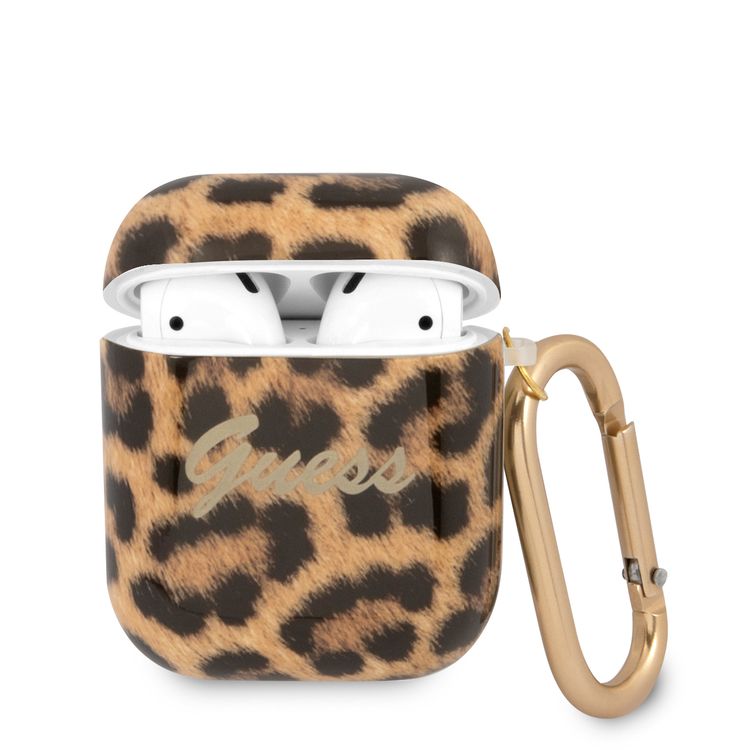 CG MOBILE Guess TPU Shiny Leopard Case with Anti-Lost Ring Compatible for AirPods 1/2, Scratch Resistant, Shock Absorption & Drop Protection Cover, Dustproof - Gold