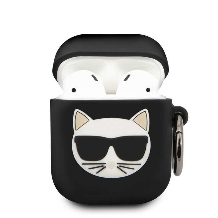 CG MOBILE Karl Lagerfeld Silicone Case ( Embossed Logo Choupette ) with Ring Compatible for AirPods 1/2, Scratch Resistant, Shock Absorption, Drop Protection, & Dustproof