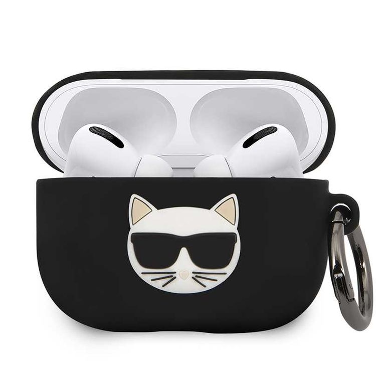 CG MOBILE Karl Lagerfeld Silicone Case ( Embossed Logo Choupette ) with Anti-Lost Ring Compatible for Airpods Pro, Scratch Resistant, Shock Absorption, Drop Protection, Dustproof Protective Silicone Cover Officially Licensed - Black