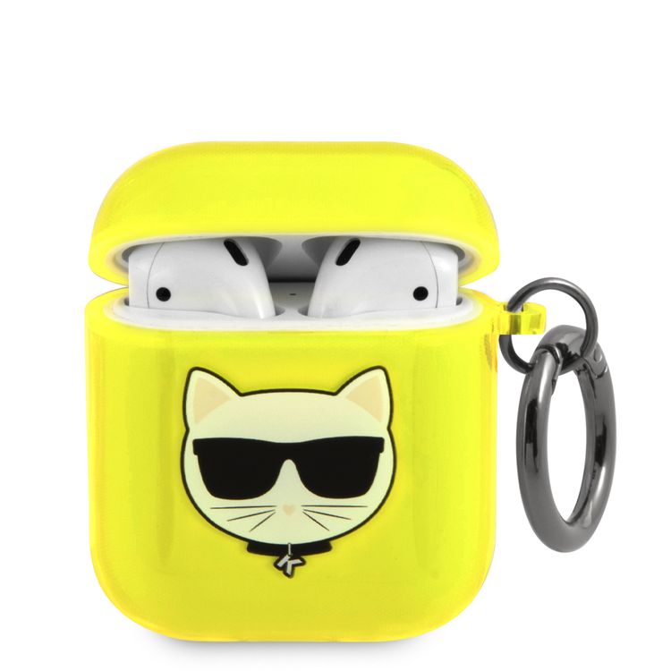 CG Mobile Karl Lagerfeld TPU Choupette Fluo Case with Ring Compatible for Apple AirPods 1 & 2, Scratch & Drop Resistant, Dustproof & Absorbing Protective Silicone Cover